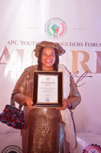 The All Progressives Congress APC Youth Stakeholders Forum has honoured the National Coordinator of the Progressive Change Agents Initiatives PCAi, Osamaye Bosede Seun with the Youth Mobiliser of the Year Award.