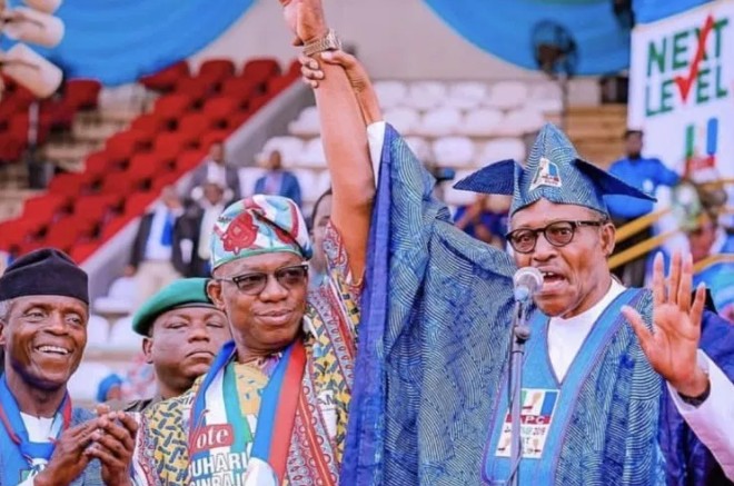 However, Mr Buhari, while addressing the crowd before presenting the party’s governorship candidate in the state, Dapo Abiodun, told the gatherings that they should all vote for APC in Saturday’s presidential election. He then added that they were free to vote any other candidate apart from that of the APC at the governorship election.