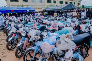 Hon. Saddam Bello, who is the Deputy Majority Leader in the Gombe State House of Assembly said the empowerment programme would not have been possible without the support of Governor Inuwa Yahaya’s intervention which led to the acquisition of 50 each of motorcycles, sewing and grinding machines as well as 5 motor vehicles.