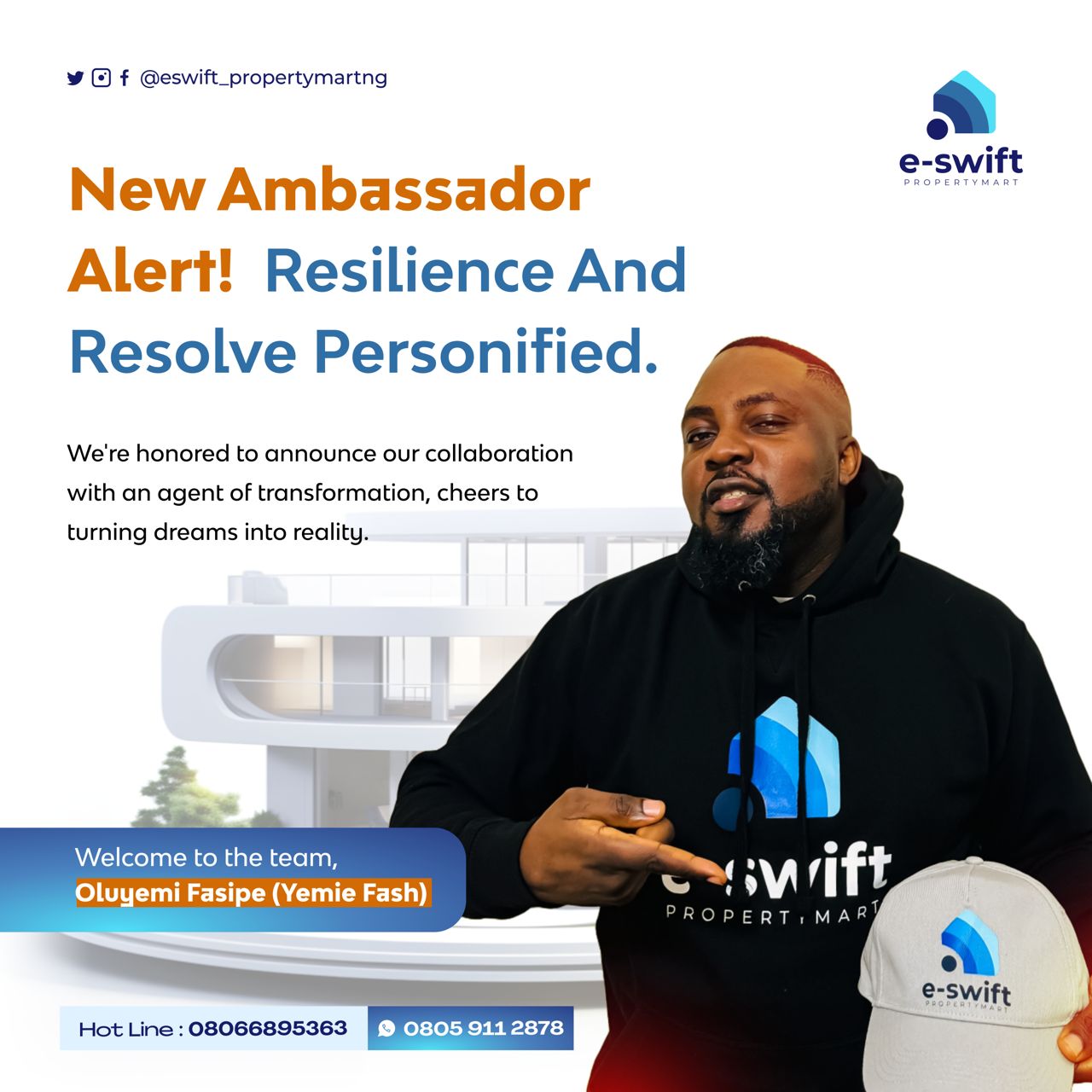 In his role as brand ambassador, Yemie Fash will actively promote E-Swift Property Mart’s services, participate in various marketing campaigns, and engage with his followers to create awareness about the company’s offerings. His vast knowledge and experience in social media will undoubtedly help strengthen the brand’s presence across multiple digital platforms.