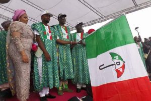 A former Vice President, Abubakar Atiku; the Chairman of the Peoples Democratic Party (PDP), Uche Secondus; and a host of other party leaders on Thursday joined the campaign for Kolapo Olusola, the party’s governorship candidate for the July 14 polls.
