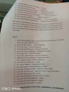 According to the statement, the group also constituted a caretaker committee and Appointed comrade Akinfemi Raymond Omojuwa and Comrade Mefun Tundor as chairman and General secretary to run their affairs for the next six months.
