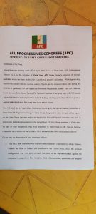 It also resolved that a new committee should be set up to review the documents and reports of the Sen. Yele Omogunwa Committee and be given the mandate to conduct a fresh screening exercise for only the aspirants who have purchased the Party governorship nomination form. It said “purchasing of nomination form will show a sign of seriousness in running for the governorship seat”